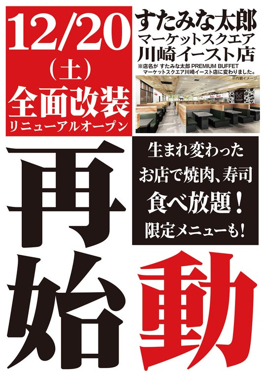 12/20(土)全面リニューアルオープン!すたみな太郎PREMIUM BUFFETマーケットスクエア川崎イースト店
