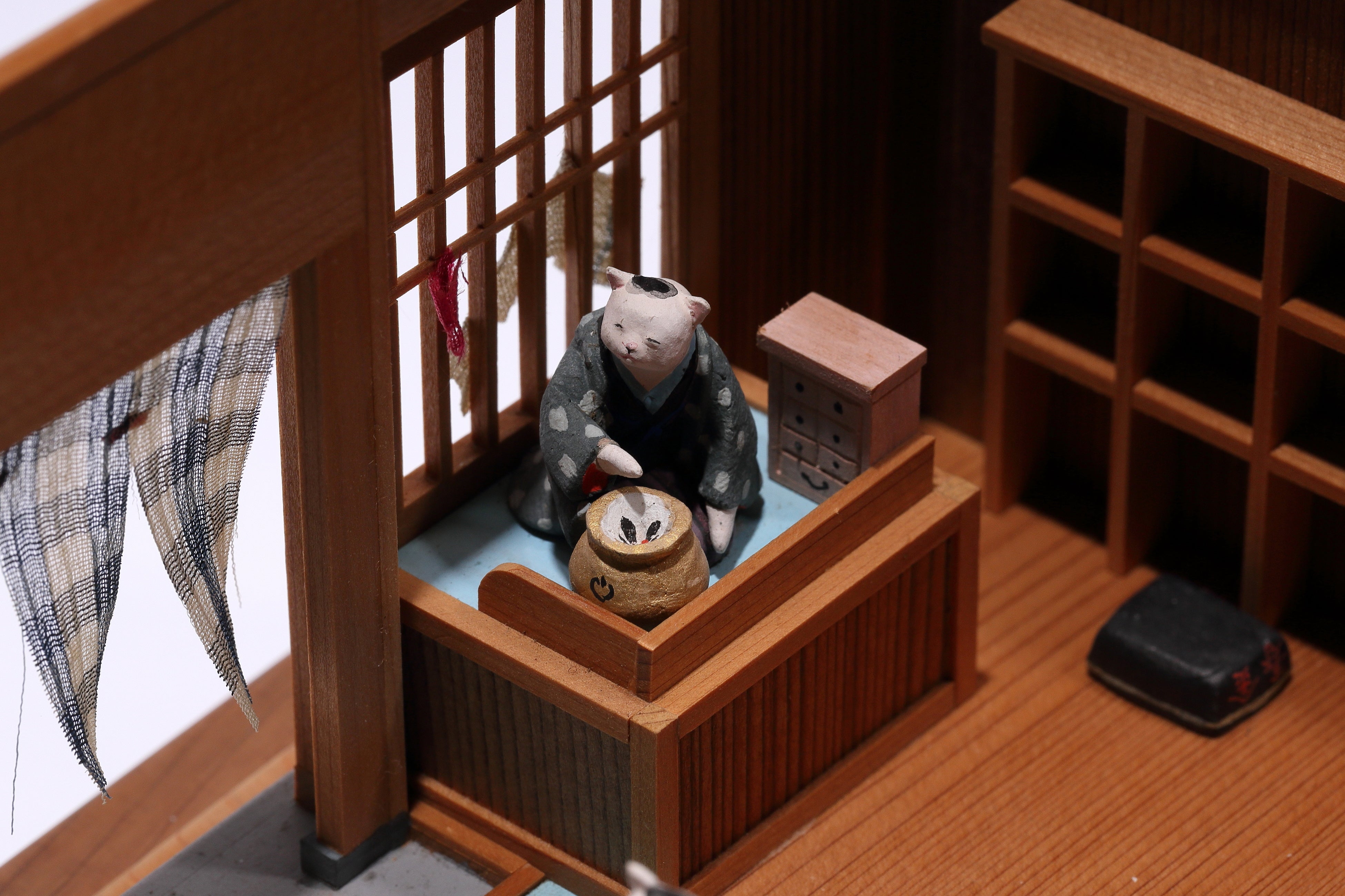 画像は、明治・大正・昭和にかけて活躍し、特に押絵羽子板や御所人形・嵯峨人形、江戸趣味の小玩具 などで高く評価された人形師・吉田永光が、立体造形したものです。