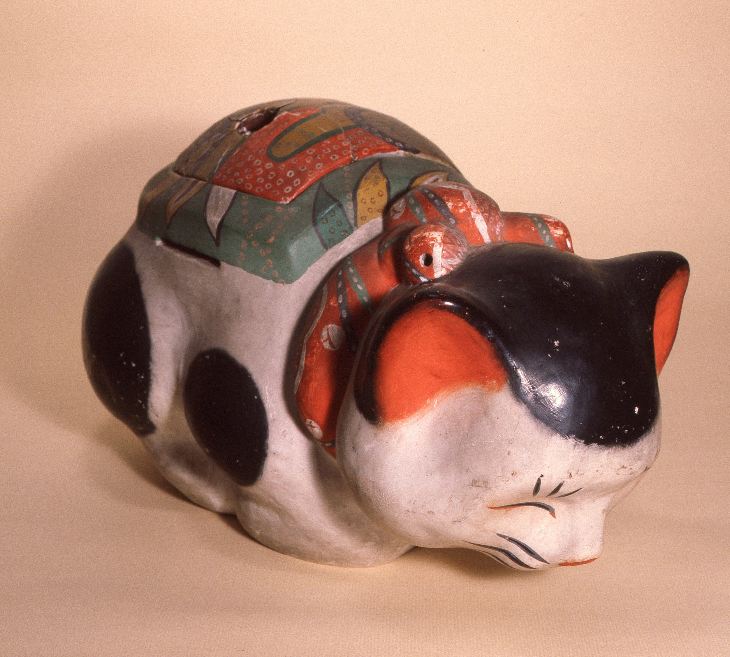 彫刻家、人形作家、画家、随筆家など、様々な顔をもつ多才なアーティストとして大正から昭和にかけて活躍しました。猫あんかは、猫の背中の蓋を開け、中に炭を入れて温まる実用品で、大佛次郎は書斎などで愛用していました。