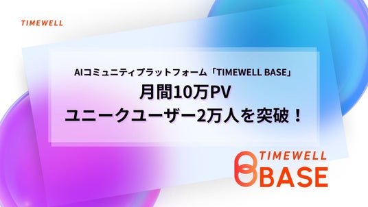 株式会社TIMEWELL(本社:神奈川県横浜市、代表取締役:濱本隆太、以下「TIMEWELL」)が運営するAIコミュニティプラットフォーム「TIMEWELL BASE」は、このたび月間10万PV、月間ユニークユーザー2万人を突破したことをお知らせいたします。