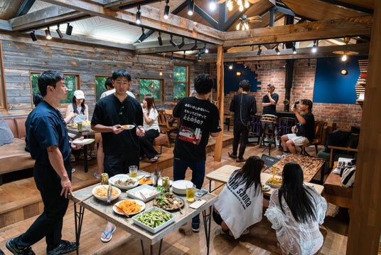kokolo sauna(R)の過去の体験会の様子。食事を囲み、参加者同士で交流=神奈川県葉山町で