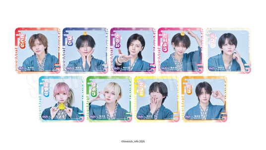 コラボオリジナルグッズを2,000円(税込)ご購入ごとに、撮り下ろし写真を使用した和紙風ステッカー(9種)をランダムで1枚お渡しします。