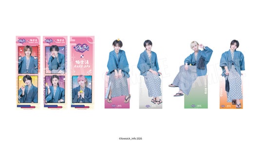 店舗ご入館時に、入館料金+#らぶしっくプラスセットの料金をお支払いいただいた方に、撮り下ろし写真を使用したコラボ限定クリアポスターをランダムでお渡しします。