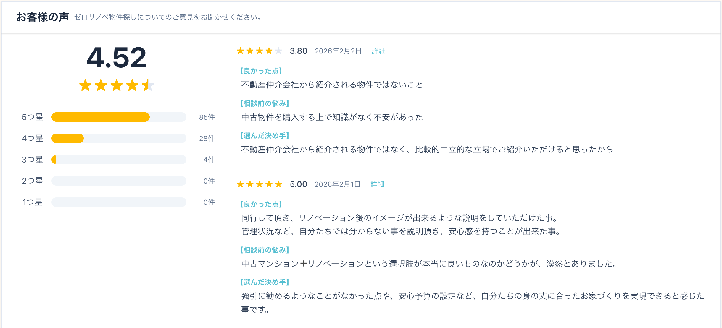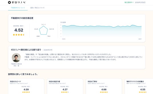 ゼロリノベ、顧客満足度アンケートと「お客様の声」を一般公開。サービス評価を「見える化」