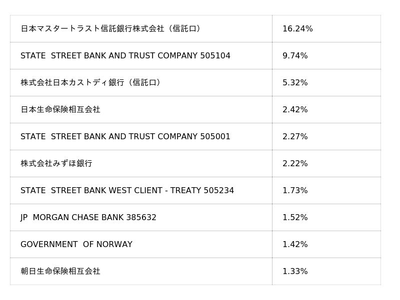 (7)大株主及び持株比率: