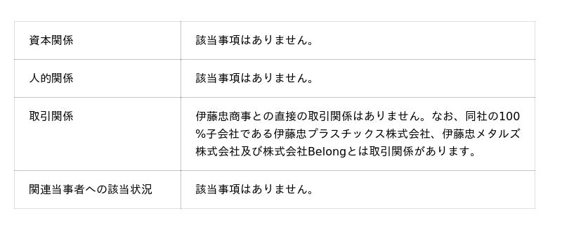 (8)上場会社と当該会社との間の関係:
