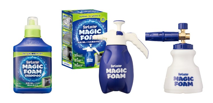 同シリーズの「マジックフォーム シャンプー」や「マジックフォーム フォームガン」を一緒に使用するとさらに、作業効率や時短洗車が可能です。