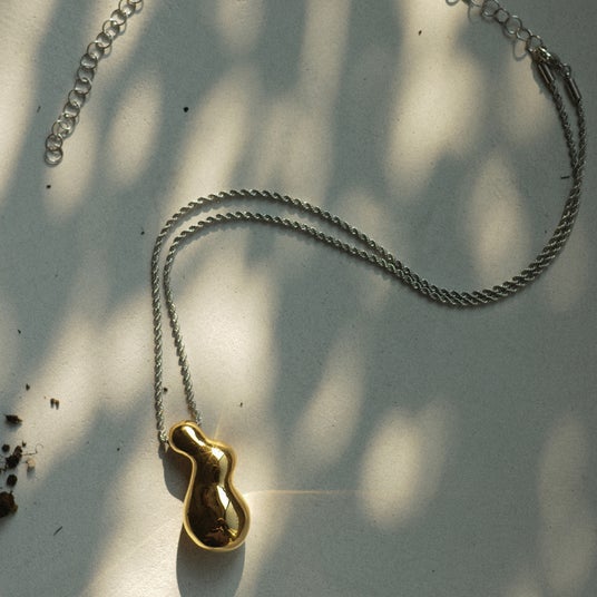<シモエ>が大切にしているのは、身につける人の身体や心に静かに寄り添い、気づけばその人の一部となるような存在。彫刻的なフォルムや有機的な曲線が、装いや佇まいの中に自然と溶け込むようなかたちを追求し続けています。