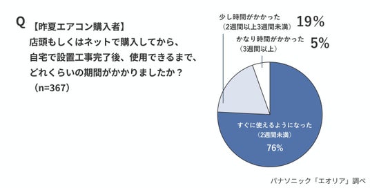 昨年夏(6~8月)にエアコンを修理または購入した人が、エアコンを使用できるようになるまでの期間を調べたところ、修理した人の36%、購入した人の24%が、修理依頼・購入から使用可能になるまで2週間以上かかる『エアコン待機者』であったことが明らかになりました。
