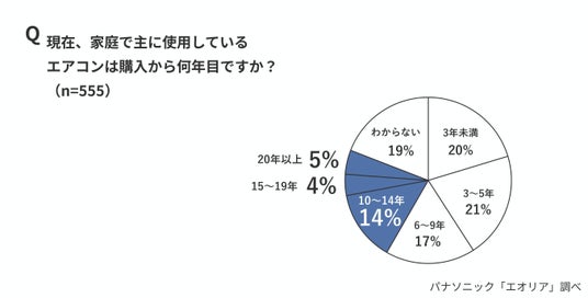 ・23%がエアコンを10年以上使用