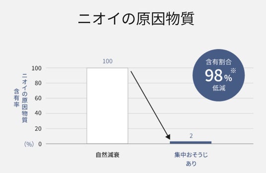 ※【試験機関】パナソニック ホールディングス(株)プロダクト解析センター【試験方法】市場を模擬した疑似ホコリにノナナールを付着させ、集中おそうじモードに曝したものと曝していないものとのエアコン吹き出し風の空気の定量分析を実施【試験結果】集中おそうじモード(137分)により98%低減することを確認。(Y23KI159)