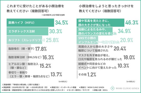 WOM CLINIC GINZA(所在地:東京都中央区、理事長:深堀 純也)は、小顔治療を受けたことがある女性を対象に、「骨格別小顔治療」に関する調査を行いました。