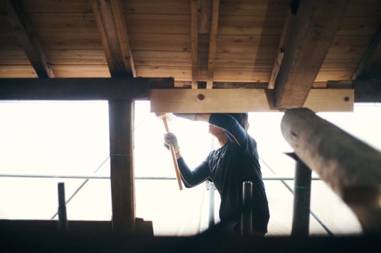 腐って使えない部分だけを切り取り、伝統工法の仕口による補修を行う大工。最大限既存の木材を残す工夫を行う。