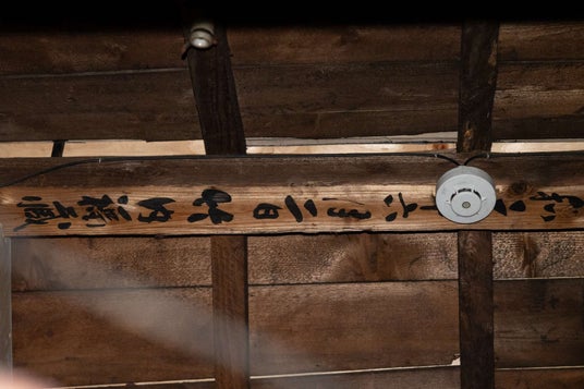 天井板を一部取り外し、棟木に墨書きで記された「上棟昭和2年6月2日竹内福蔵」。見学ツアーで見ることができる